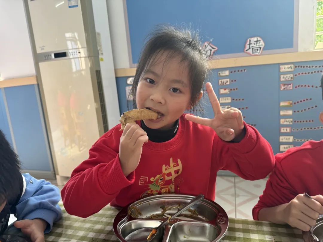 请大家一起来跟着镜头享受美食带给孩子们的快乐时光吧!经过餐前卫生准备,孩子们自觉遵守用餐礼仪,自主有序地取回自己喜欢的食物,坐在小椅子上津津有味地品尝,享受着这一刻的美好“食”光,脸上洋溢着满满的幸福感。