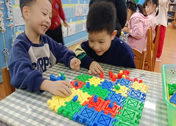 1.在分享活动中教师肯定陈俊志和符家豪的游戏创新性和持续探索的精神,鼓励他们继续发挥创造力,丰富游戏内容。