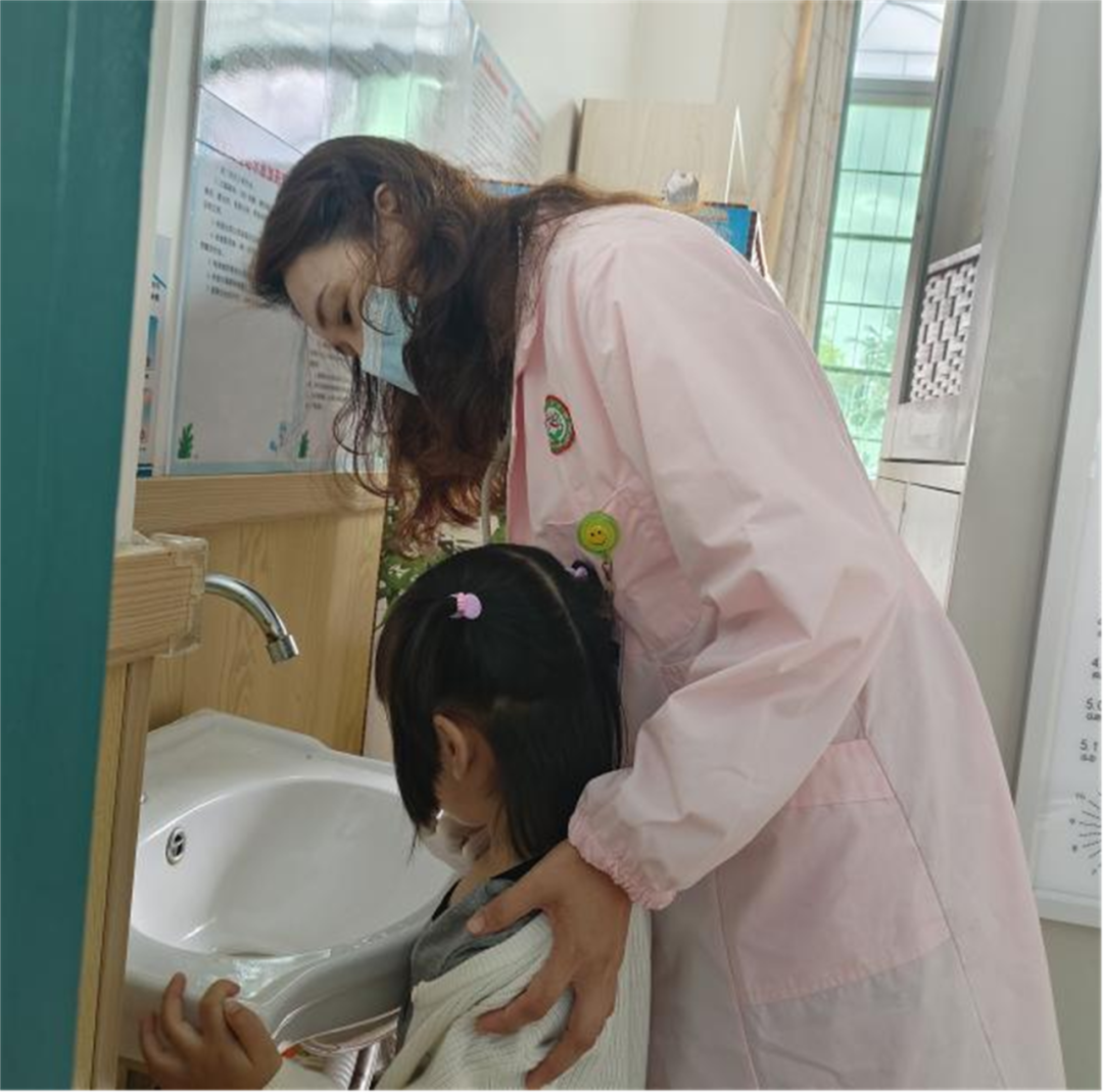 班级老师协助园医把病儿带到医务室,园医给孩子催吐,以减少毒物的吸收,降低对身体的伤害,并安抚幼儿。