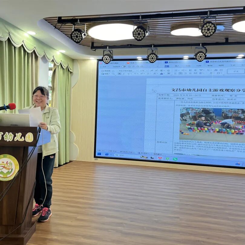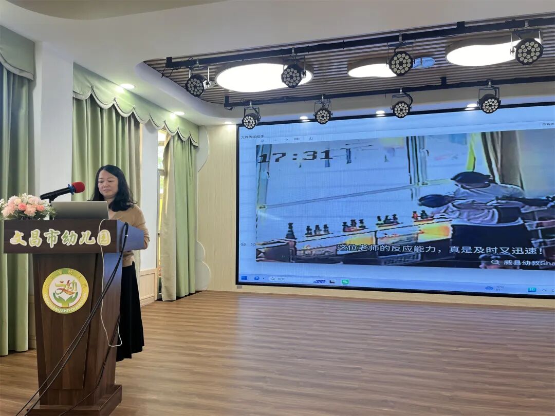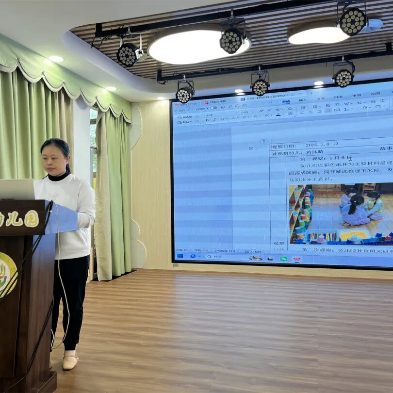 当天下午,各班教师依次分享精心准备的幼儿观察案例。老师们聚焦日常保教工作中记录的真实案例,结合幼儿年龄特点,细致剖析幼儿游戏行为背后的心理需求与发展规律,同步分享科学有效、可落地的引导策略与教育方法,为全园教师搭建起互学互鉴、取长补短、共同提升的专业交流平台。