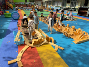 贺平负责挑选拱形积木搭建船身轮廓,家豪用原木积木加固两侧,还默契配合,将垫子铺进船身当“座椅”。搭建中,船身出现摇晃,他们尝试调整原木积木的摆放位置、增加拱形积木的支撑点,不断试错,努力让小船稳固。在搭建的时候,他们不断思考积木形状、数量、位置与小船稳定性的关系,像发现增加底部原木积木数量可让船更稳。