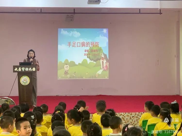 为了增强家园沟通,开阔幼儿视野,2021年12月14日上午,我们很荣幸邀请到了文昌市医院儿科谢丽芳主管护师(大二班蔡兴年妈妈)来给小朋友们上了一堂精彩的健康知识活动《预防手足口病》,让我们一起去现场看一看吧。