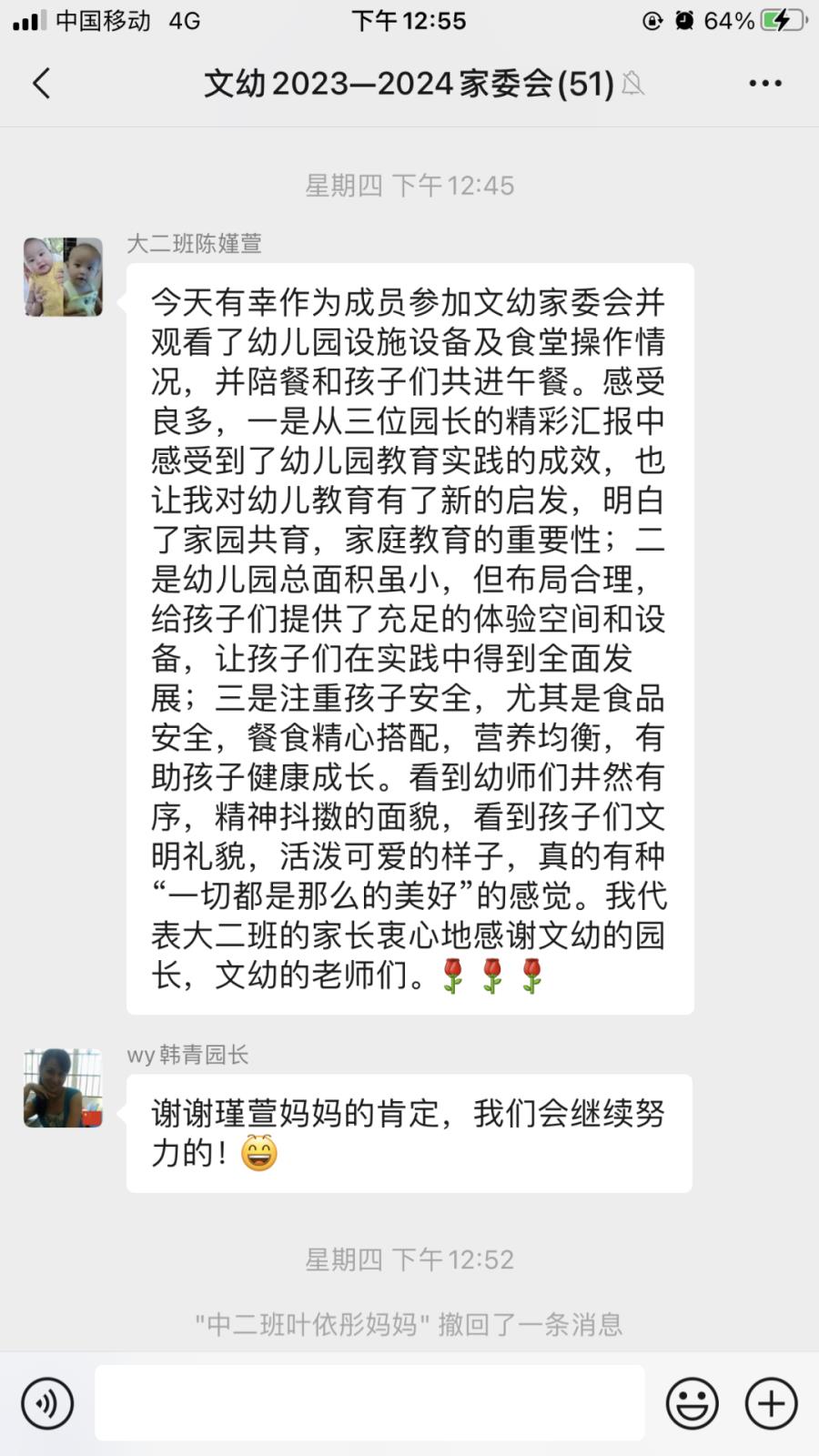 传承、融合、善思、笃行、创新、发展,是文幼人继往开来的源动力。为了帮助家委们更好地了解我园的保教工作情况,陈强副园长通过“以匠心践初心 以初心致未来”为题从上学期的工作回顾、所取成绩、反思展望三方面向家委们进行了保教工作汇报。并表态文幼人将以“一切为了孩子”为目标,与时俱进,不断改进工作方式、方法,努力把工作做实做细,继续向上、向前、向着更好而努力,努力为孩子的成长助力,努力办家长们更满意的教育。
