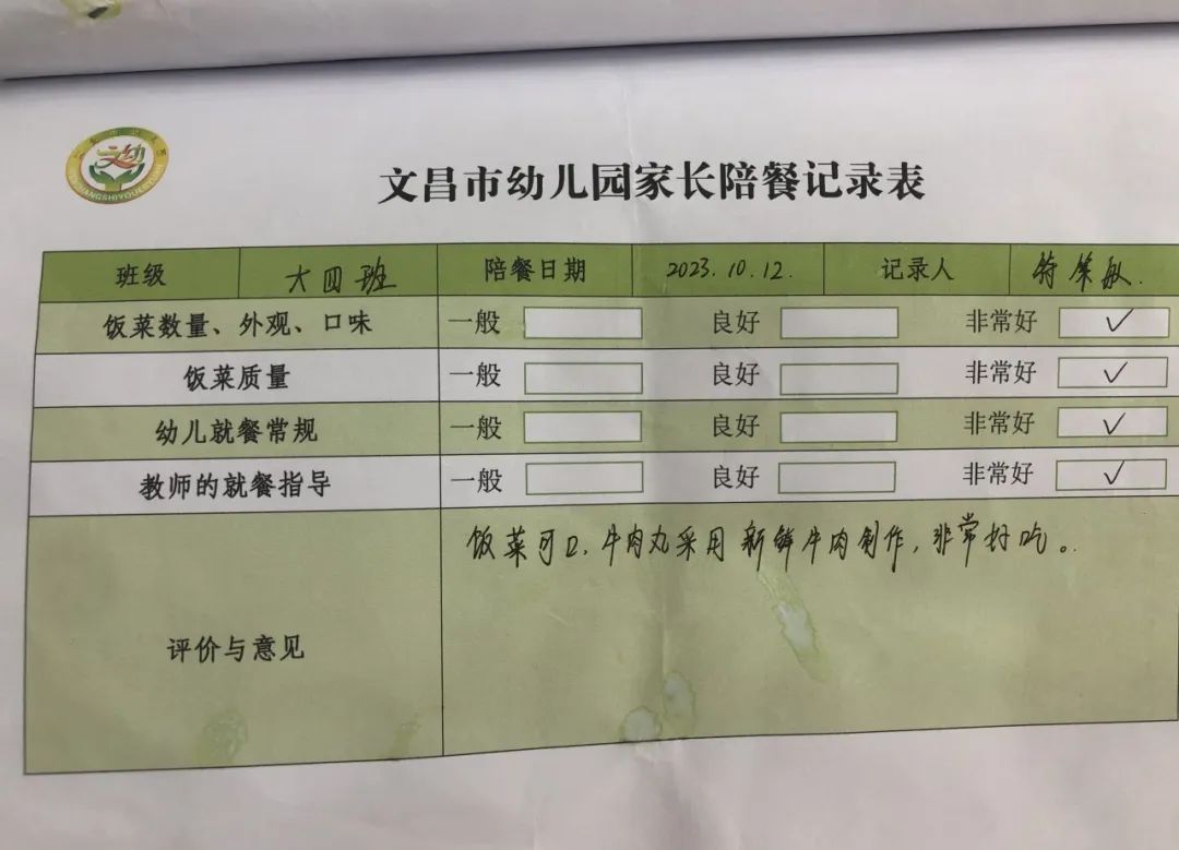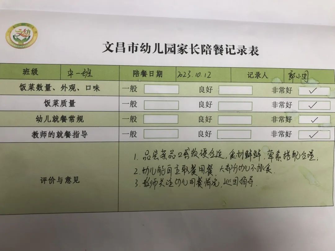 午餐时间到了,家委们走进班级进行陪餐,品尝了幼儿的饭菜,对幼儿的伙食质量给予充分肯定,一致反映幼儿的食谱方面搭配合理,营养丰富,健康科学。得到了各位家委们的一致好评,同时也给我们提出了更好的建议。