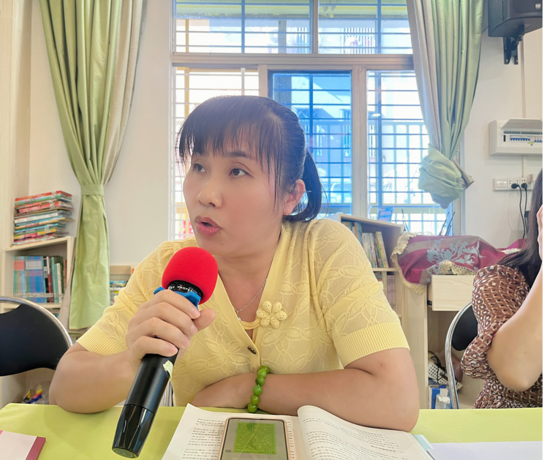 现场的气氛活跃。教师们围绕着《幼儿发展的关键指标与行为观察》一书展开了深入的探讨。他们不仅踊跃地表达自己的观点,而且积极地分享在实际教学中积累的宝贵经验。