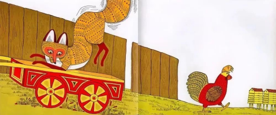 《母鸡萝丝去散步》是一本外国经典图画书,文字与画面形成一种非常滑稽的对比,文字讲述的是母鸡萝丝去散步的平淡无奇的故事,而另一个主人公狐狸,却在母鸡的背后上演了一出滑稽可笑的“捉鸡”屡屡受挫的故事。利用图文合奏制造了紧张刺激的情节,狐狸紧紧跟在母鸡的身后,每次眼看就要吃掉了,可是翻到下一页,故事又总是发生意外,让狐狸的计谋无法得逞。对于孩子来说,他们迫不及待地翻到故事的下一页,去看看狐狸究竟有没有吃掉母鸡,如果没有,它又会受到什么好笑的“惩罚”。同时故事也告诉孩子们,当你遇到危险时,不要慌张,要沉着冷静的应对。