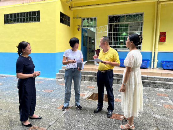 文昌市教育局督导室的韩一师、伍红叶两位同志亲临幼儿园对防台风工作进行指导。韩青园长带领安全小组成员对幼儿园户外及周边开展了地毯式安全隐患排查,教室以班级为单位开展安全排查工作,包括检查所有教室、功能室、睡室、厨房等门窗是否牢固,所有电线开关设备是否有隐患,户外活动场所的活动器械是否安全放置等,并对校园内的树木进行修剪,以减少台风时的损害。